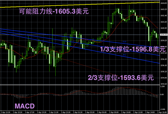 目前,黄金震荡比较徘徊在1600美元附近,长线末端录得十字星,或又可能转为窄幅的偏空震荡。不过长线MACD空头已经消散,所以总体上黄金会在1590美元附近获得支撑,即1590 – 1600 美元区间为近期黄金的主要震荡区间。