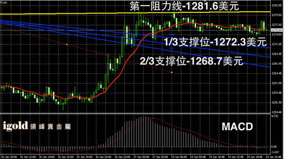 黄金阴阳烛录得柱体较短,整体处于红色日均线中位,横盘运行趋势明显,短线MACD显示呈中性,多头消散后需要注意是否会转空,晚上低位支撑可首先参考1274美元,若跌破或小幅下行至1271美元附近,高位若突破1279美元或小幅上探,但是预期在突破1282美元前不太可能大幅上升。