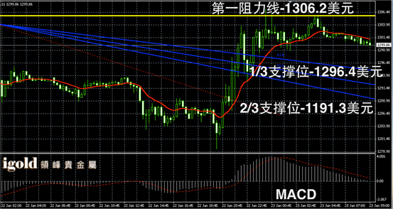 技术回顾:昨晚的评论中,我们明确预测欧洲央行QE会出台,金价会分阶段上探1294美元和1303美元,这一判断与昨晚的走势完全一致。