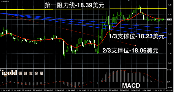 白银日线走势录得阳烛增多,RSI录得76,也处于超买区间。小时线上柱体回落至红色日均线以下,多头较弱,柱体收短,白银价格日线在突破18美元后,若后续持稳18.3美元附近,那么很有可能向18.5美元附近攀升。