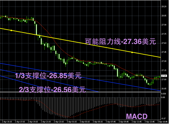 今日摘要:金银价格今天继续下行盘整,由于黄金走势仍然未能触及Fibonacci低位区间的支撑位,所以市场继续下跌。另外,在缺乏利好消息,而整体偏空震荡时,投资者更加倾向于离场观望。黄金价格上午从1576美元下行至1567美元附近盘整,最低时录得1563.1美元/盎司;白银价格则从27.3美元下跌至27美元附近震荡,最低时触及26.91美元/盎司。晚上,美国数据的发布可能使得金银价格进一步承压。