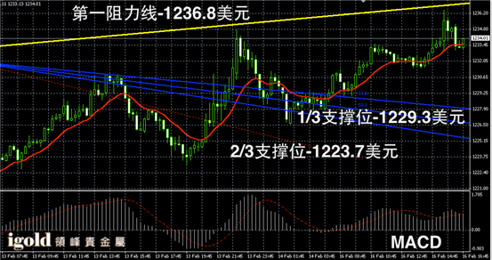技术回顾:午评中我们提醒投资者金价一旦突破1233美元,可小幅看涨,下午的走势验证了我们的判断,且在高位阻力上我们也给出了准确的预测。