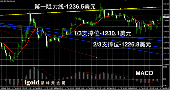 黄金阴阳烛录得柱体处于红色日均线中位,振幅较小,短线MACD显示呈中性,黄金价格或继续围绕1232美元进行整理,高位若突破1235美元,或小幅上探至1237美元附近震荡。低位支撑可首先留意1230美元附近支撑。