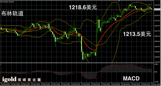 黄金阴阳烛录得柱体收短,整体处于红色日均线中位,短线MACD显示弱势多头主导,黄金价格午后或持续在1215美元附近震荡,高位若突破1217美元,或继续小幅上探,低位支撑可分阶段参考1213美元和1210美元附近。