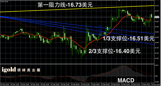 白银阴阳烛录得横盘运行趋势明显,柱体处于红色日均线中位,短线MACD显示呈中性,白银价格晚上或再次上探16.75美元附近,低位支撑可首先参考16.55美元和16.5美元。