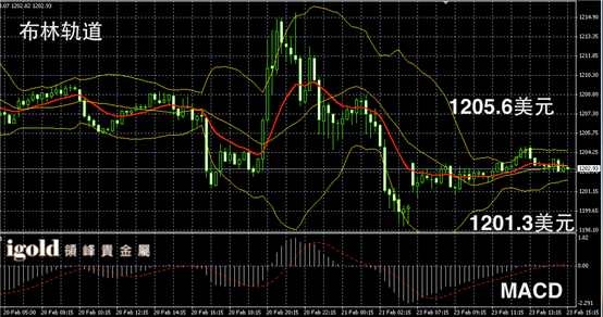 黄金阴阳烛录得柱体较短,布林轨道区间收平,短线MACD显示呈中性,黄金价格短线或在1203美元附近盘整,高位若突破1205美元,可小幅看涨。