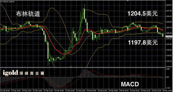 黄金阴阳烛录得布林轨道小幅下探,末端阴烛增多,短线MACD显示呈中性,黄金价格午后或再次小幅下探,低位支撑建议分阶段留意1199和1197美元,若跌破或大幅滑落至1192美元附近,高位若突破1204美元,可小幅看涨。