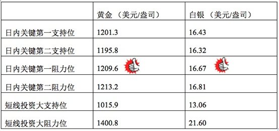 黄金日线走势末端录得阳烛,且逐渐逼近红色日均线,长线MACD显示空头减弱,小时线上金价柱体高于红色日均线,市场重新回至区间高位,未来多头能否延续取决于是否有效突破1212美元附近阻力;白银日线走势与黄金相似,小时线上反弹速度较慢,白银价格日线震荡区间或上调至16.6-16.7美元区间,多头后续走势取决于是否突破关键阻力位16.7美元附近。