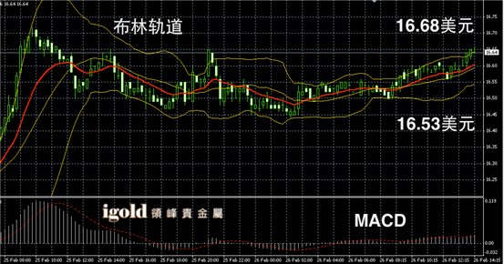 白银阴阳烛录得阳烛增多,小幅高于红色日均线,但是柱体较短,短线MACD显示弱势空头主导,白银价格或首先回落至16.6美元附近徘徊,高位若有效突破16.65美元,或继续上升至16.72美元附近;低位支撑可首先参考16.55美元附近。