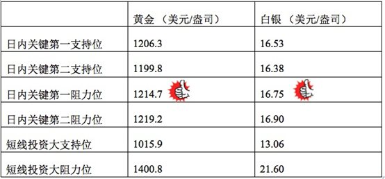 在支持位和阻力位上,可参考以下数据