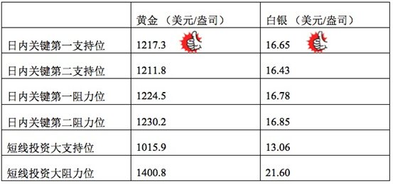 技术回顾:午评中,我们指出贵金属市场下午会小幅回调,并且提醒投资者一旦金价跌破1220美元,会向1217美元附近滑落,这一判断与下午的走势完全相符。