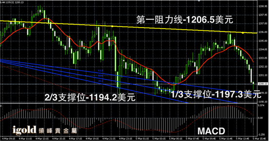 黄金阴阳烛短线录得阴烛增多,后期低于红色日均线,短线MACD显示呈中性,黄金价格建议参考1199美元附近支撑,若跌破空头或扩大至1195美元附近,高位若重回1204美元附近,或持稳。