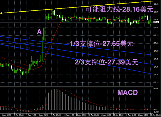 白银阴阳烛录得运行趋势平缓,柱体整体较短,且聚焦在红色日平均移动线中位,短线MACD没有明显的多头或空头趋势,预期未来或继续窄幅震荡。