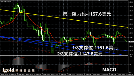 黄金阴阳烛录得短线波浪形走势非常明显,柱体较短,短线MACD显示呈中性,黄金价格晚上或继续在1152-1157美元附近波段运行,晚上8点前后,若有突破可顺势小幅看涨看跌。