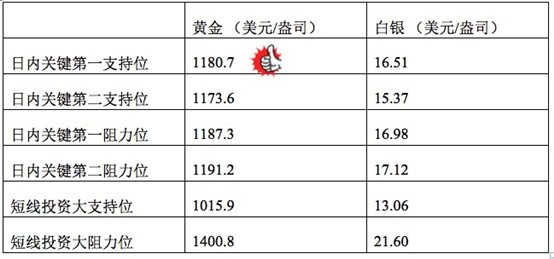 在支持位和阻力位上,可参考以下数据