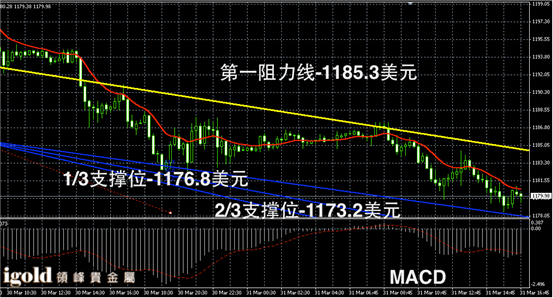 技术回顾:午评中,我们预测贵金属市场仍旧弱势偏空,并且指出金价会在1181美元附近运行,下午的走势验证了我们的判断。