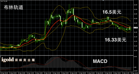 白银阴阳烛录得后期柱体小幅低于红色日均线,短线MACD显示弱势空头主导,白银价格午后或向16.45美元附近小幅回升,下午4点左右振幅或扩大,低位空头信号建议参考16.35美元附近。