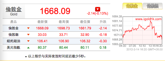 领峰贵金属 14-03-2012 晚评 金银下跌后震荡平稳,关注今晚伯南克的有关发言