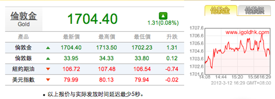领峰贵金属 12-03-2012 晚评 金银被美指滞后效应拉低,未来美国数据主导金银走势