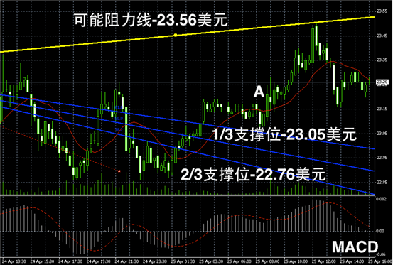 今日摘要:受到3月份美国耐用品大幅下滑的后续影响,美元指数今天继续下行,从82.9下跌至82.7附近震荡,使得金银价格反弹获得持续支撑,现货黄金价格今天从1429美元反弹突破关键阻力线至1442美元附近,最高价格触及1448美元/盎司;国际银价则从23.1美元反弹至23.3美元附近震荡,最高价格录得23.5美元/盎司。另外,欧元小幅反弹至1.304美元也为金银价格的上扬提供了动力。