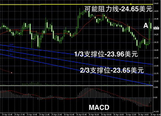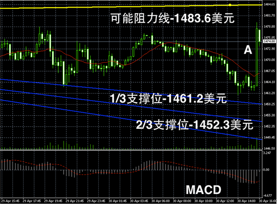 今日摘要:金银价格在昨天小幅提振后,今天开盘开始下行,盘中出现了小幅的下行修正趋势。有交易商表示,由于中国内地五一假期的缘故,金市交易可能有小幅下行。黄金价格今天盘中从1472美元下跌至1463美元附近震荡,黄金价格最低时触及1460.8美元/盎司;白银价格则从24.4美元下行至24.1美元附近震荡,白银最低价格录得24.05美元/盎司。不过下午,黄金价格仍旧反弹持稳在1470美元附近震荡。