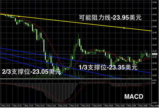 数据方面,德国4月份制造业经理人采购指数PMI值小幅上升至48.1,欧元区4月份PMI值则上升至46.7,不过仍然低于枯荣线50,显示欧元区经济处于衰退过程中。目前欧元浮动在1.30美元附近,难以给金银价格提供支撑。