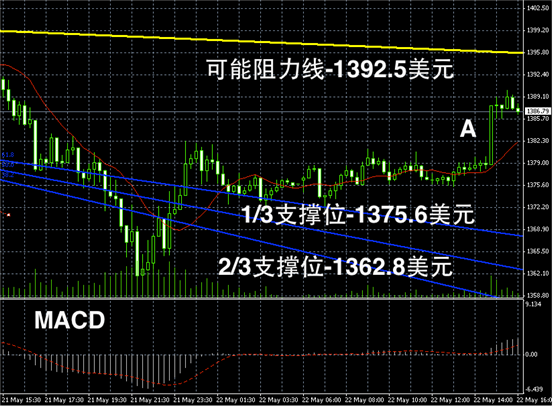 黄金阴阳烛录得比较平稳,末端有小幅的跳涨,不过短线MACD仍然没有明显的多头或空头趋势,预期未来后继续高位持稳。短线支撑可首先参考阳烛A的最低价。