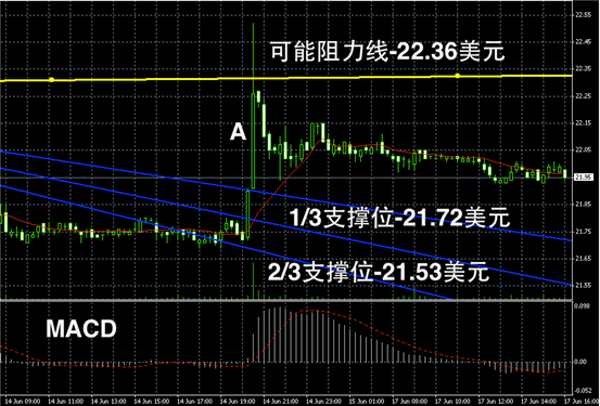 白银阴阳烛录得整体收稳,柱体较短且位于红色日平均移动线中位,短线MACD显示多头或空头趋势不明显,预计未来或继续区间横盘震荡。震荡区间可参考阳烛A的高低价。