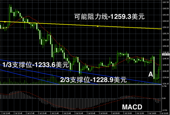 黄金阴阳烛录得震荡有所反复,前后阴阳烛间隔出现,区间整理趋势明显,短线MACD多头或空头均不明显,预期未来或继续围绕1250美元震荡,低位支撑可参考阴烛A的最低价。