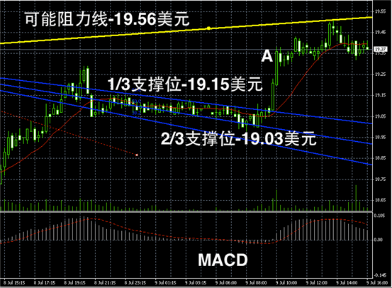 白银阴阳烛录得反弹后柱体收短,且高位聚焦明显,短线 MACD显示多头有所消散,短信或继续在19.5美元上下震荡,低位支撑可参考阳烛A的最低价。
