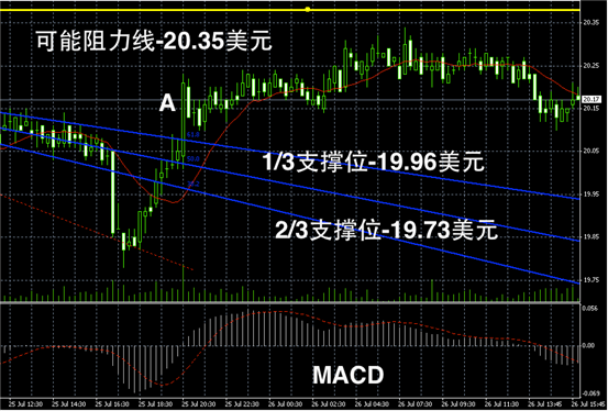 白银长线阴阳烛录得继续在Fibonacci低位区间中位徘徊,长线MACD没有明显变化,RSI则继续收平在51附近,预期或在20美元附近偏空震荡。