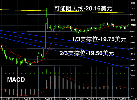 白银阴阳烛录得柱体较多,且前后比值差异小,高位聚焦明显,短线MACD显示弱势多头主导,预期或继续在20美元上下窄幅震荡,不过后续或小幅偏空下行。