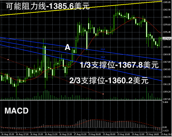 黄金长线阴阳烛录得来到了Fibonacci第二区间,长线MACD见长,RSI则上行至69附近,因为已经接近70超买区域,所以短线回调的几率加大。预期未来或围绕1370美元附近进行宽幅震荡。