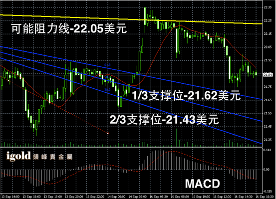 白银阴阳烛录得离散率较高,且阴烛增多,短线MACD显示空头增加,后期白银价格或可能继续在21 – 22 美元区间偏空震荡。