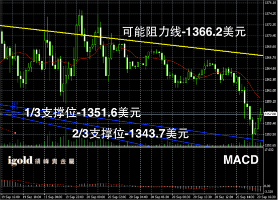黄金阴阳烛录得短线开始低于红色日平均移动线,且录得阴烛较多,不过MACD上仍然呈中性,且后期有小幅的反弹。黄金价格短线或继续在1360美元上下窄幅震荡。