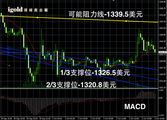金银在跌破了Fibonacci之后,均出现了比较明显的震荡区域,黄金围绕在1330美元上下,长线MACD录得平均,RSI则收平在46,多空呈中性。