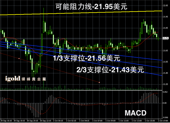 白银价格则浮动在21.5美元上下,MACD录得DIF收平,RSI则在44附近。整体,白银价格或继续对这一区域进行支撑加固。