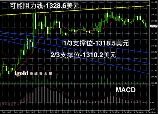 黄金阴阳烛录得柱体较短,且平均分布在红色日平均移动线中位,短线MACD呈中性,短息黄金价格或继续在1320美元上下窄幅震荡。