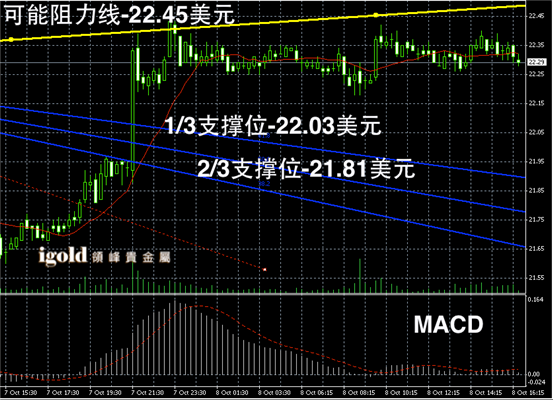 白银阴阳烛录得柱体较短,且聚焦明显,整体处于红色日平均移动线中位,短线MACD显示呈中性,白银价格短线后期或继续窄幅震荡。