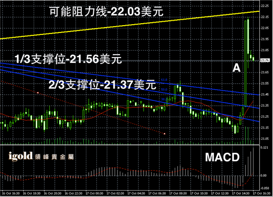 白银长线阴阳烛录得反弹高于红色日平均移动系统,长线MACD显示空头减弱,RSI则录得上行至49,后期白银价格或继续区间反弹,如果能够持稳在21.3美元,后期可能继续上行至22美元附近。