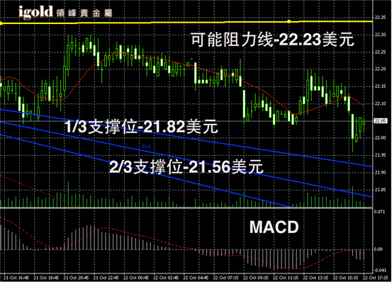 白银长线阴阳烛录得阳烛出席,且继续高于红色日平均移动系统,长线MACD呈弱势空头,RSI则录得在54,没有明显的多空震荡走势。白银价格或继续小幅持稳在22美元以上。