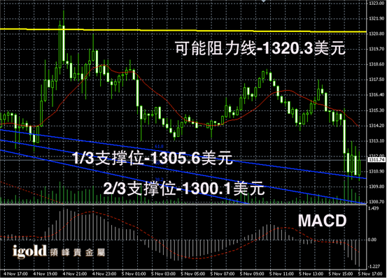 黄金阴阳烛录得柱体较短,整体处于红色日平均移动线中位,后期阴烛增多,短线MACD显示多空整体呈中性,后期金价可能继续在1310美元附近窄幅震荡,不过偏空几率在增加。