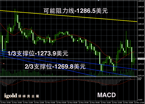 今日摘要:开盘连续两天的空头积聚,使得贵金属市场今天继续承压下行。国际黄金价格今天开盘从1281美元附近震荡下行至1277美元,最低时触及1276美元/盎司。国际白银价格则从21.3美元下探至21.1美元附近震荡。午后市场有所回稳,金价再次回升至1280美元,白银则小幅回升至21.2美元附近。此外,美元指数今天从81.1上行至81.3,也给金银价格的震荡带来了压力。