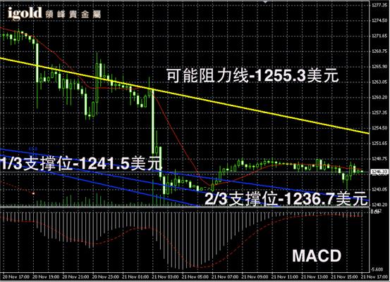 黄金价格长线阴阳烛目前大幅低于红色日平均移动线,且跌破了1250美元支撑下,长线MACD显示空头集聚,RSI则下行至29,由于RSI已经进入超卖区域,所以金价短线可能在1250美元附近小幅持稳震荡。不过目前持稳趋势并不明朗,未来可能继续下探。