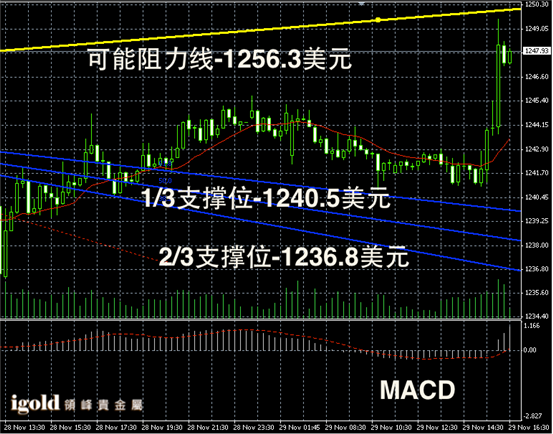 黄金价格阴阳烛录得阳烛增多,且后期柱体录得高于红色日平均移动线,短线MACD显示多头增加,后期黄金价格或在1250美元上下窄幅震荡。
