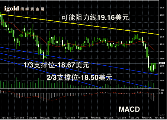 白银阴阳烛短线录得阴烛增多,且低于红色日平均移动线,短线MACD显示空头增加,后期白银价格或在18 – 19美元区间继续滑落。