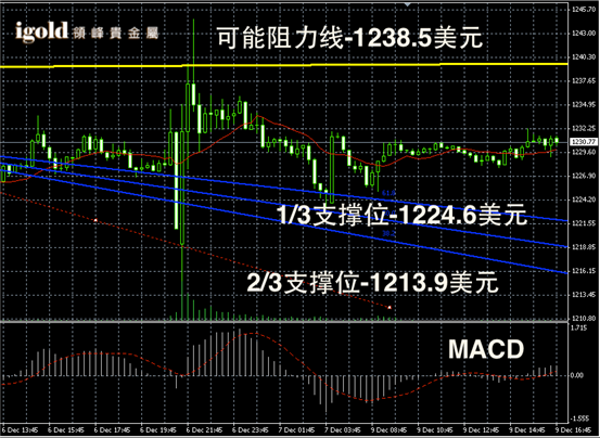 黄金长线阴阳烛录得继续低于红色日平均移动系统,整体在Fibonacci在第一区间内低位运行,长线MACD显示空头继续积聚,RSI目前录得上行至37,显示低位小幅持稳,黄金价格未来或继续在1230美元上行窄幅震荡。
