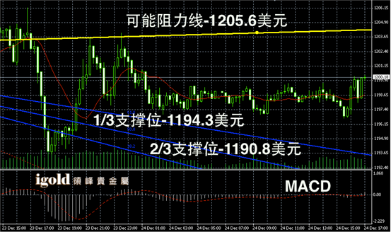 今日摘要:与昨天的走势基本一样,贵金属市场在圣诞节前的震荡偏于谨慎,一来是消息面比较清淡,另外是欧美市场的投资者忙于圣诞无心顾及金融市场的走势。现货黄金价格今天继续在1198美元上下窄幅震荡,整体振幅仍然较小;现货白银价格则录得从19.4美元下行至19.3美元附近震荡,美元指数从80.4小幅上行至80.5。随着今天晚上休市的到来,市场或继续在目前的区间中位修正。