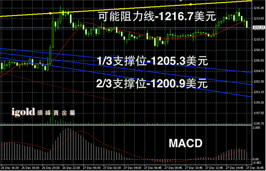 从圣诞节开盘后两天的走势来看,金银价格目前震荡比较平稳,且低位支撑一直表现强劲。市场对金银价格的信任,远远超出各方的预期。此前多家投行认为金价或下跌至1200美元以下,但是截至目前,黄金价格仍然持稳1200美元以上。