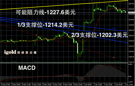 黄金阴阳烛在Fibonacci第一区间进一步持稳,柱体录得高于红色日平均移动线,长线MACD显示空头有所减弱,同时RSI则录得回升至48附近,且后续或仍有部分反弹势头,黄金价格若再1220美元以上持稳,则可能进一步反弹至1230美元附近。